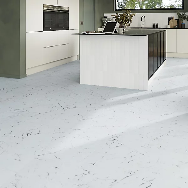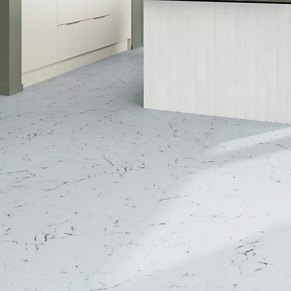 GoodHome Mambo White Natural Marble effect Textured Click vinyl Tile, 1.92m²