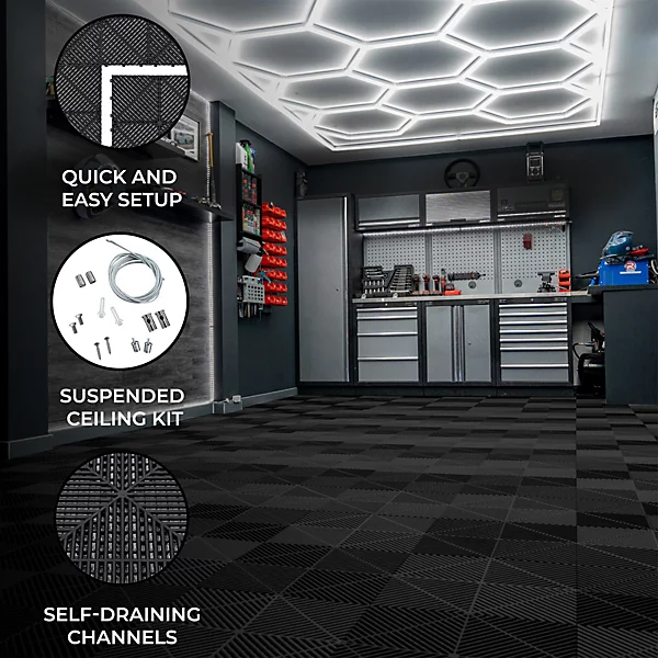 Hexagon Vented Garage Floor Tiles x 120 With Edges – Black